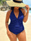 Costume da bagno intero in tinta unita, semplice per uso quotidiano, con collo ad aletta, per donna taglia curvy, adatto per l'estate