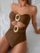 Costume da bagno intero da donna nero tinta unita con decorazione in metallo traforato, per l'estate