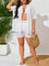 Cover up di 2 pezzi composto da camicia a maniche corte e pantaloncini alla caviglia a bottoni singoli, design semplice